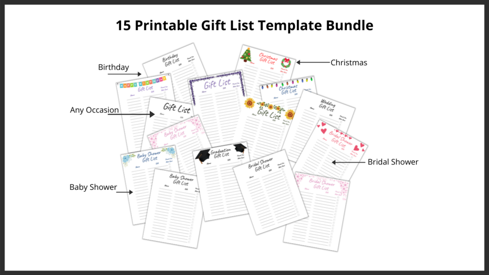 15 Printable Gift List Template Bundle